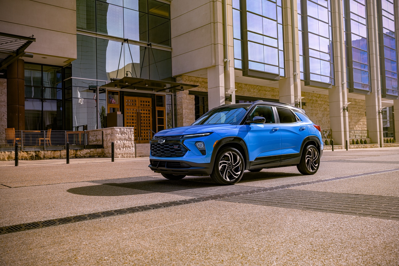The 2025 Trailblazer makes a bold statement with its sporty exterior styling. Sleek lines, a distinctive grille, and available two-tone roof options help you stand out from the crowd. LED signature lighting and available 18-inch alloy wheels add to the Trailblazer's head-turning presence on the streets of Vermillion, OH.
