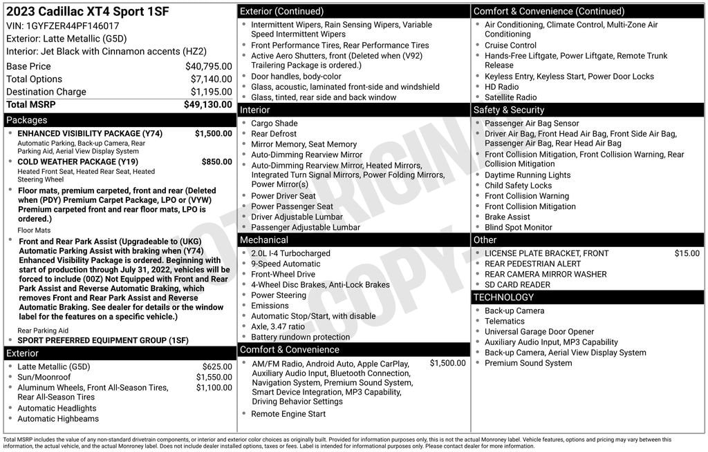 Check out all these great option's Cold Weather Package (Heated Driver & Front Passenger Seats, Heated Rear Outboard Seating Positions, and Heated Steering Wheel), Enhanced Visibility Package (Automatic Parking Assist w/Braking, HD Surround Vision, Rear Camera Mirror, Rear Camera Mirror Washer, and Rear Pedestrian Alert), Preferred Equipment Group 1SF (4.2 Diagonal Color Display Driver Info Center, 6-Way Power Passenger Seat Adjuster, 7-Speaker Audio System w/Auxiliary Amplifier, Auto-Dimming Inside Rear-View Mirror, Automatic Emergency Braking, Electronic Cruise Control w/Set & Resume Speed, Front & Rear Park Assist, HD Rear Vision Camera, and Manual Rake & Telescoping Steering Column), Radio: Cadillac User Experience w/Embedded Nav (Bose Centerpoint Surround Sound 13-Speaker System, HD Radio, SD Card Reader, SiriusXM w/360L, and Wireless Apple CarPlay/Wireless Android Auto), 20 Twin 5-Spoke Alloy Wheels, 3.47 Axle Ratio, 4-Wheel Disc Brakes, 7 Speakers, 8-Way Power Driver Seat Adjuster, ABS brakes, Air Conditioning, Alloy wheels, AM/FM radio: SiriusXM with 360L, Apple CarPlay/Android Auto, Auto High-beam Headlights, Auto-dimming door mirrors, Auto-dimming Rear-View mirror, Automatic temperature control, Brake assist, Bumpers: body-color, Compass, Delay-off headlights, Driver door bin, Driver vanity mirror, Dual front impact airbags, Dual front side impact airbags, Dual Panel Glass Sunroof w/Power Tilt/Sliding, Electronic Stability Control, Emergency communication system: OnStar and Cadillac connected services capable, Four wheel independent suspension, Front anti-roll bar, Front Bucket Seats, Front Center Armrest, Front dual zone A/C, Front License Plate Bracket, Front reading lights, Fully automatic headlights, Garage door transmitter, Heated door mirrors, Illuminated entry, Inteluxe Seat Trim, Knee airbag, Leather steering wheel, Low tire pressure warning, Memory seat, Occupant sensing airbag, Outside temperature display, Overhead airbag, Overhead console, Panic alarm, Passenger door bin, Passenger vanity mirror, Power door mirrors, Power driver seat, Power Liftgate, Power passenger seat, Power steering, Power windows, Radio data system, Radio: Cadillac User Experience AM/FM Stereo, Rain sensing wipers, Rear anti-roll bar, Rear reading lights, Rear seat center armrest, Rear window defroster, Rear window wiper, Remote keyless entry, Roof rack: rails only, Security system, Speed control, Speed-sensing steering, Split folding rear seat, Spoiler, Standard Suspension, Steering wheel mounted audio controls, Tachometer, Telescoping steering wheel, Tilt steering wheel, Traction control, Trip computer, Turn signal indicator mirrors, Variably intermittent wipers, Voltmeter, and Wheels: 18 10-Spoke Diamond Cut/Argent Met Alloy. Whether you are looking to get into a brand new or pre-owned vehicle, we can customize everything to fit into your budget and make it affordable for you. We specialize in financing. If you have perfect credit or are looking to establish or rebuild your credit, we will help you find the best financing rates possible. We have even have first time buyer programs! Even if this is you first vehicle, you can trust our team at Fosterâs to help you find the perfect vehicle to fit your needs. We look forward to working with you!