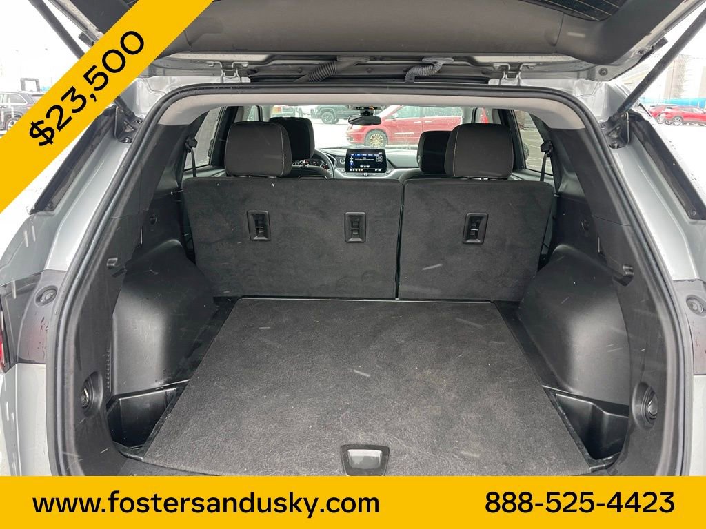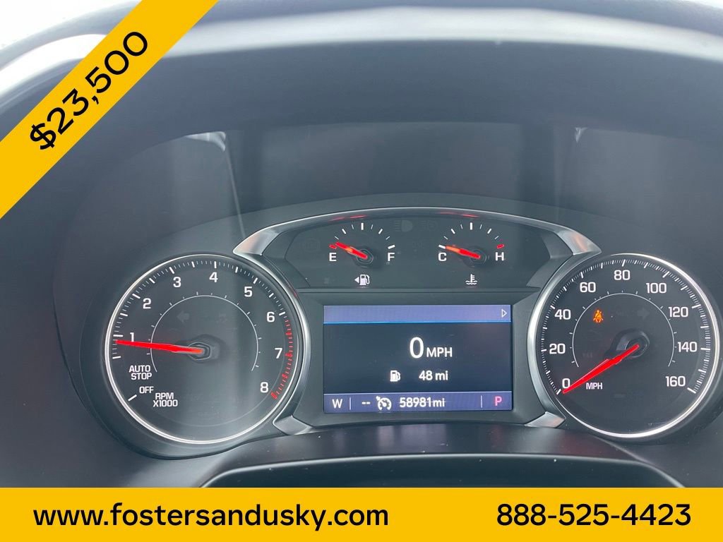 Check out all these great option's Midnight/Sport Edition (Black Roof-Mounted Side Rails, Front & Rear Black Bowties, and Wheels: 18 High Gloss Black Painted Aluminum), Preferred Equipment Group 2LT, 170 Amp Alternator, 3.47 Final Drive Axle Ratio, 4-Way Manual Front Passenger Seat Adjuster, 4-Wheel Disc Brakes, 6 Speakers, 6-Speaker Audio System Feature, 8-Way Power Driver Seat Adjuster, ABS brakes, Air Conditioning, Alloy wheels, AM/FM radio: SiriusXM with 360L, Apple CarPlay/Android Auto, Auto High-beam Headlights, Automatic temperature control, Brake assist, Bumpers: body-color, Child-Seat-Sensing Airbag, Compass, Delay-off headlights, Driver door bin, Driver vanity mirror, Dual front impact airbags, Dual front side impact airbags, Electronic Stability Control, Emergency communication system: OnStar and Chevrolet connected services capable, Four wheel independent suspension, Front anti-roll bar, Front Bucket Seats, Front Center Armrest, Front dual zone A/C, Front reading lights, Fully automatic headlights, Heated door mirrors, Illuminated entry, Knee airbag, Leather Shift Knob, Low tire pressure warning, Occupant sensing airbag, Outside temperature display, Overhead airbag, Overhead console, Panic alarm, Passenger door bin, Passenger vanity mirror, Power door mirrors, Power Driver Lumbar Control, Power driver seat, Power steering, Power windows, Premium audio system: Chevrolet Infotainment 3 Plus, Premium Cloth Seat Trim, Radio data system, Radio: Chevrolet Infotainment 3 Plus System, Rear anti-roll bar, Rear reading lights, Rear seat center armrest, Rear window defroster, Rear window wiper, Remote keyless entry, Ride & Handling Suspension, Security system, SiriusXM w/360L, Speed control, Speed-sensing steering, Split folding rear seat, Spoiler, Steering wheel mounted audio controls, Tachometer, Telescoping steering wheel, Tilt steering wheel, Traction control, Trip computer, Variably intermittent wipers, Voltmeter, and Wheels: 18 Grazen Metallic Aluminum. Whether you are looking to get into a brand new or pre-owned vehicle, we can customize everything to fit into your budget and make it affordable for you. We specialize in financing. If you have perfect credit or are looking to establish or rebuild your credit, we will help you find the best financing rates possible. We have even have first time buyer programs! Even if this is you first vehicle, you can trust our team at Fosterâs to help you find the perfect vehicle to fit your needs. We look forward to working with you!