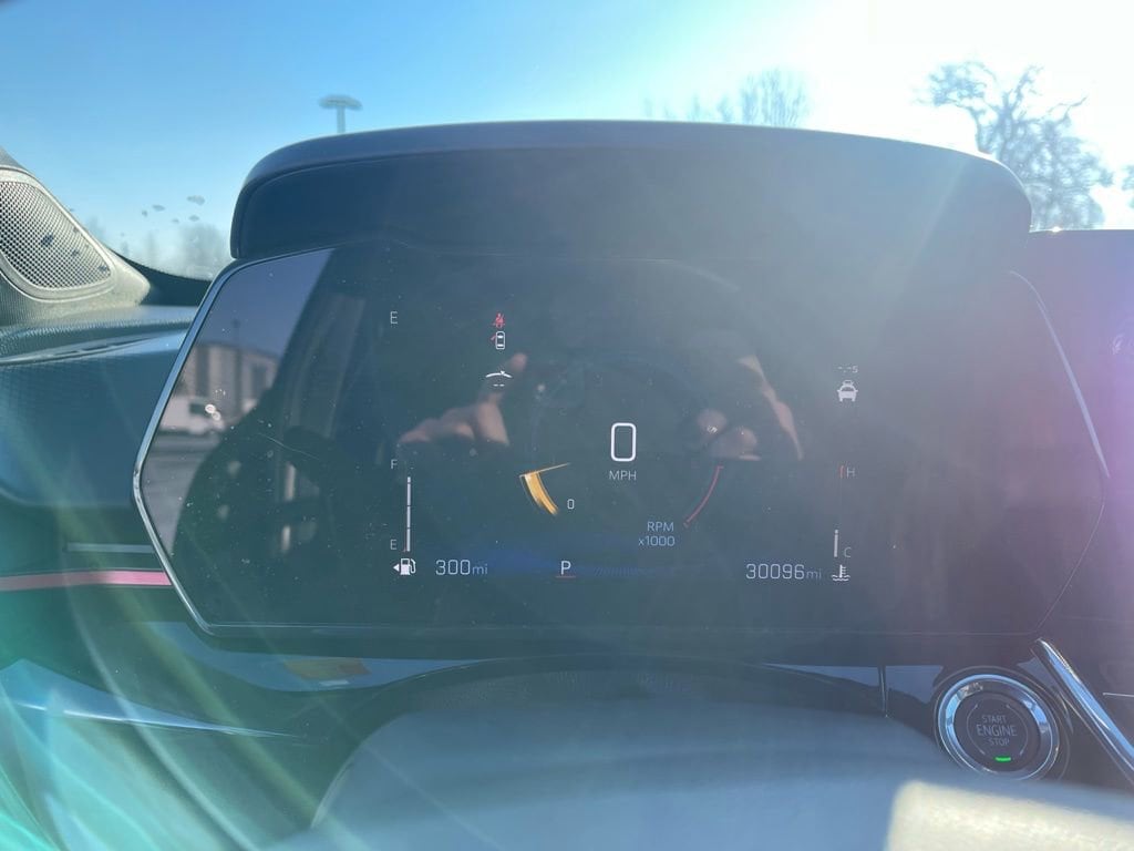 - With the vehicle in Park or Neutral, press the brake pedal and then press the engine start/stop button to start the engine; the green indicator on the button will illuminate